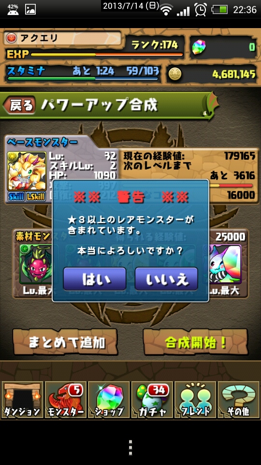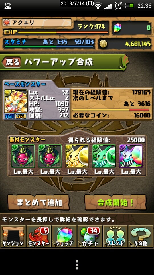 経験値が300万テーブルなので頑張ればレベルMAXに行けるかも…。