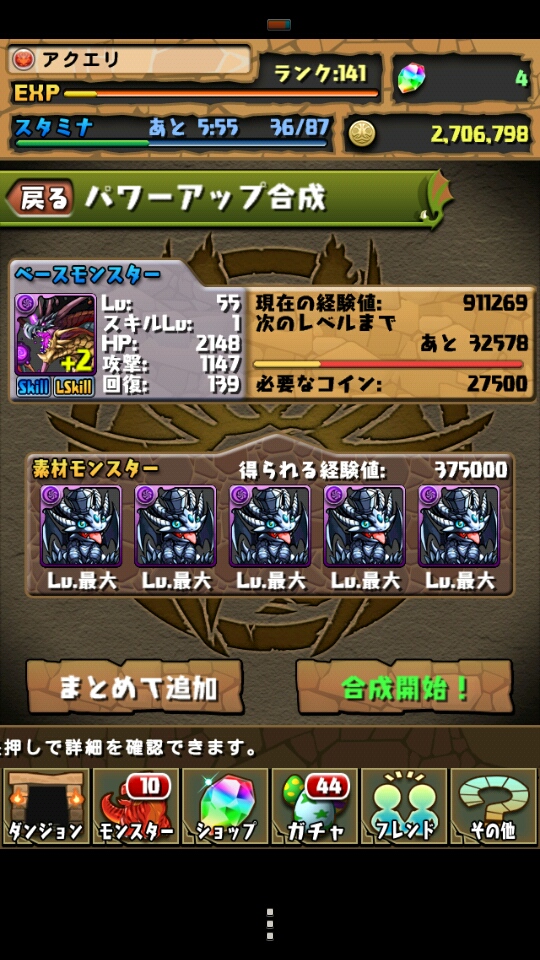 MAXまでには全然足らないけど、スタメン強化しないとステージ進めないしね。