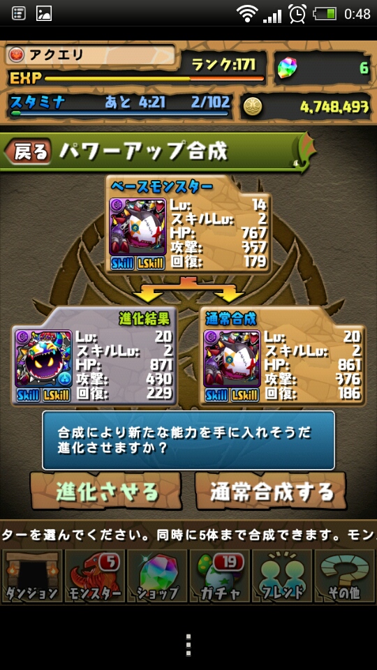 究極進化とはいいつつ、上がるステは微々たるもんだな。