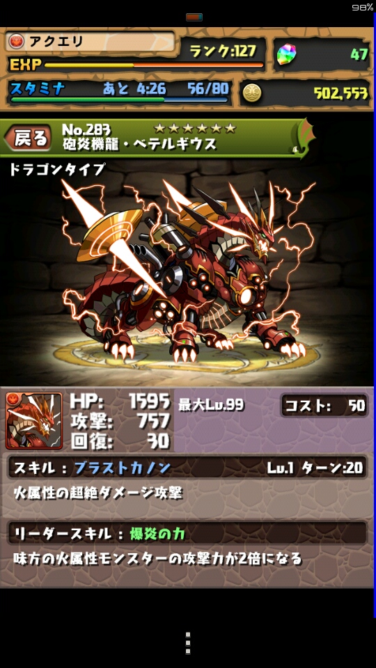 結局、ドロップ2倍になって、魔法石も使って、スタミナ回復して何度もやったんですが、ノーマル上級ではドロップしませんでした。