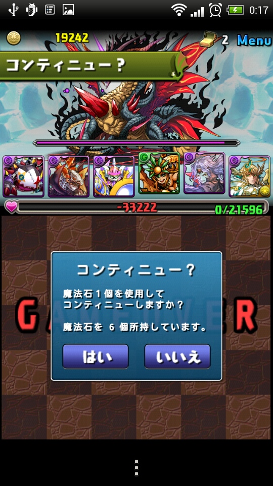 コンティニューしても、負け確定な感じだったので、コンティニューはせず。