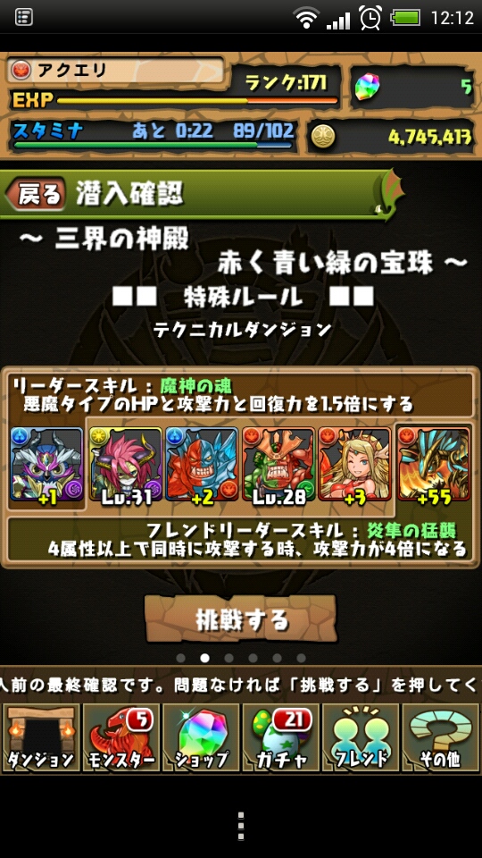 【パズドラ】三界の神殿 赤く青い緑の宝珠