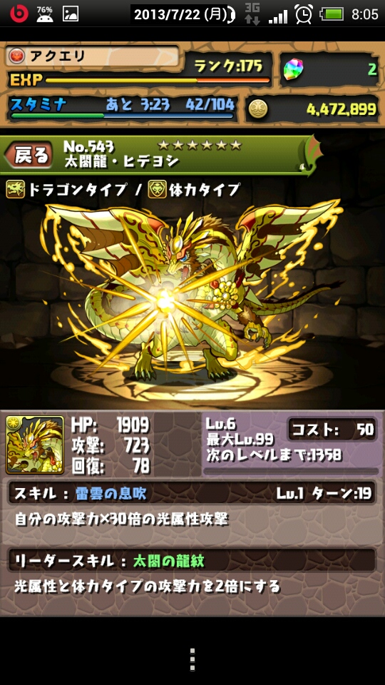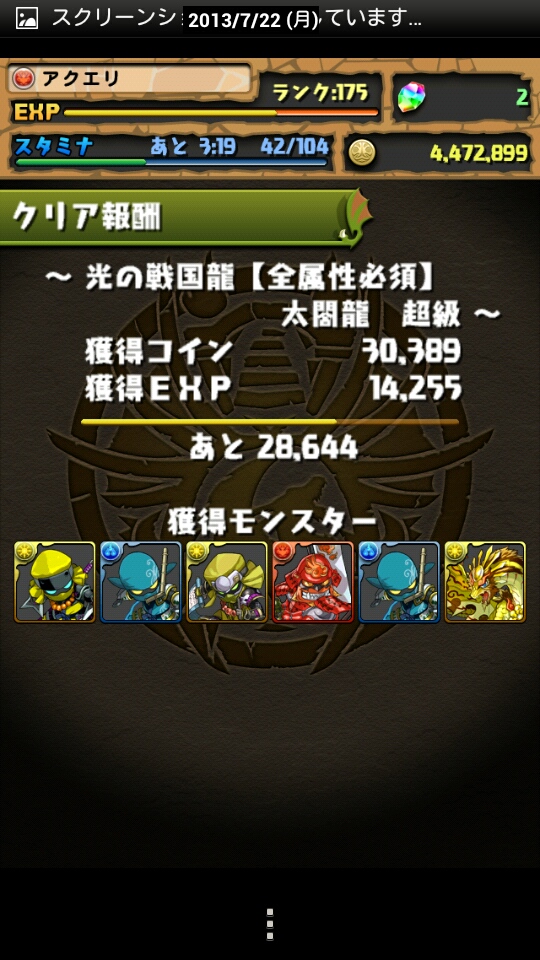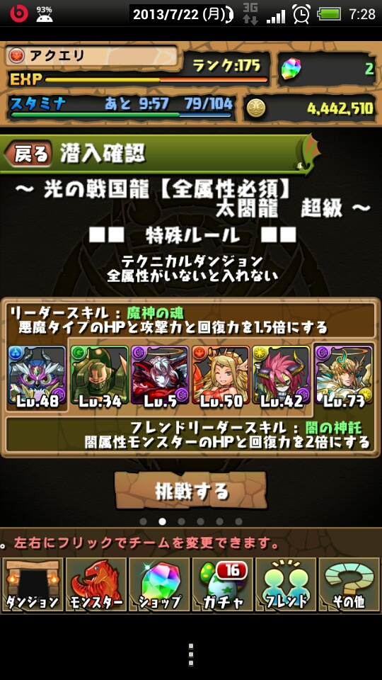 戦国龍はステータスが高いのでとっておきたいなぁと、落ちてきそうな朝から超級でスタート。