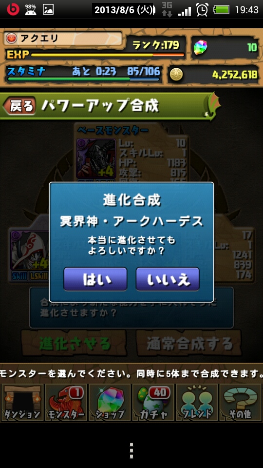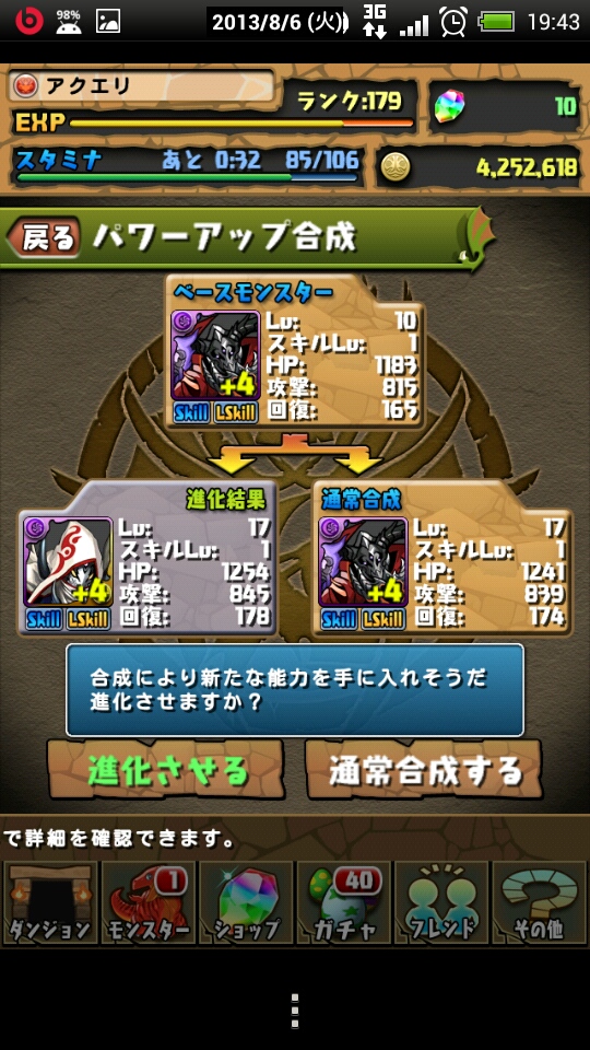 素材が集まったので、というか既に集まってたみたいなので、究極進化。