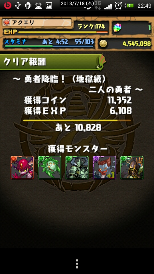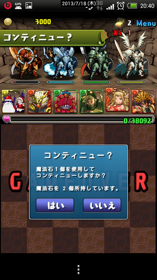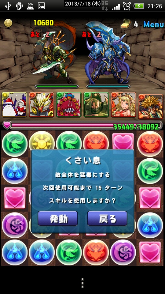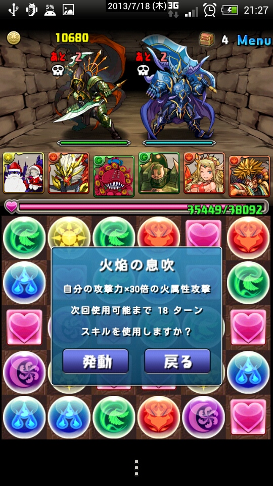 あら、各種デビル。平均3500オーバーのダメージを食らってたら2ターン目で死にかけましたが、なんとか次のステージへ。