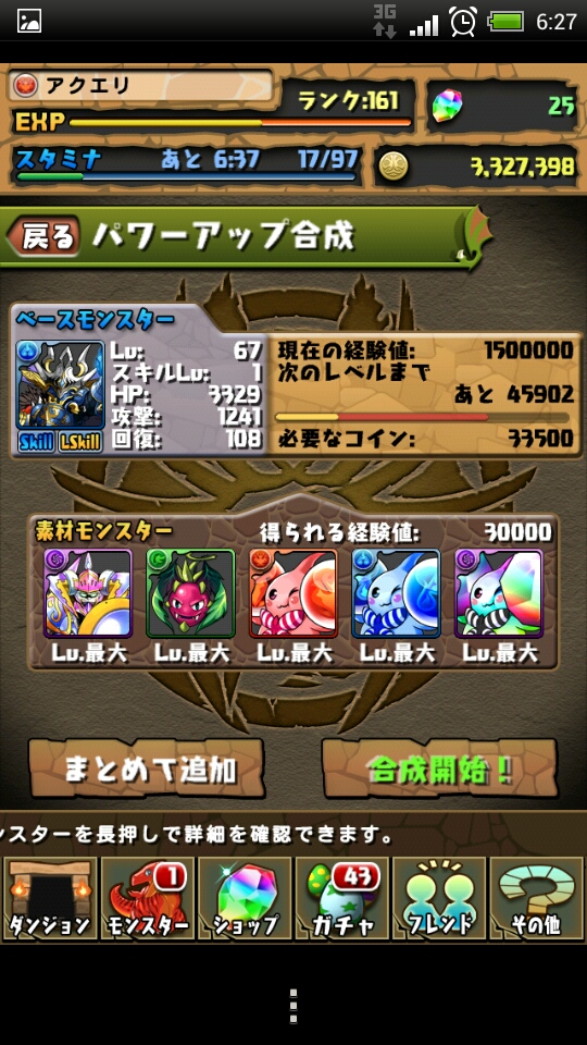 ついこの前(いつ?w)究極進化が解禁になったような気がするんですが、なんか素材たまらず、ダブミスリット待ちでした。
