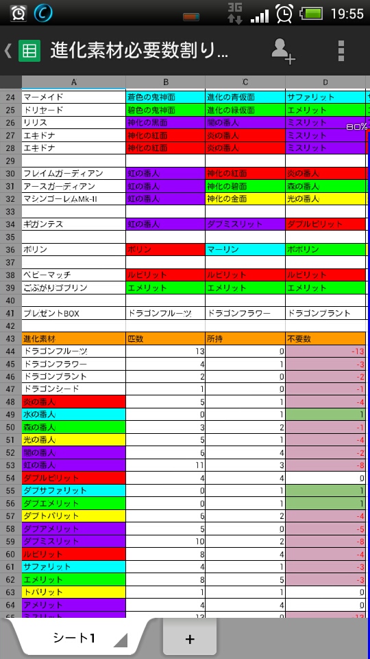 【パズドラ】進化素材管理