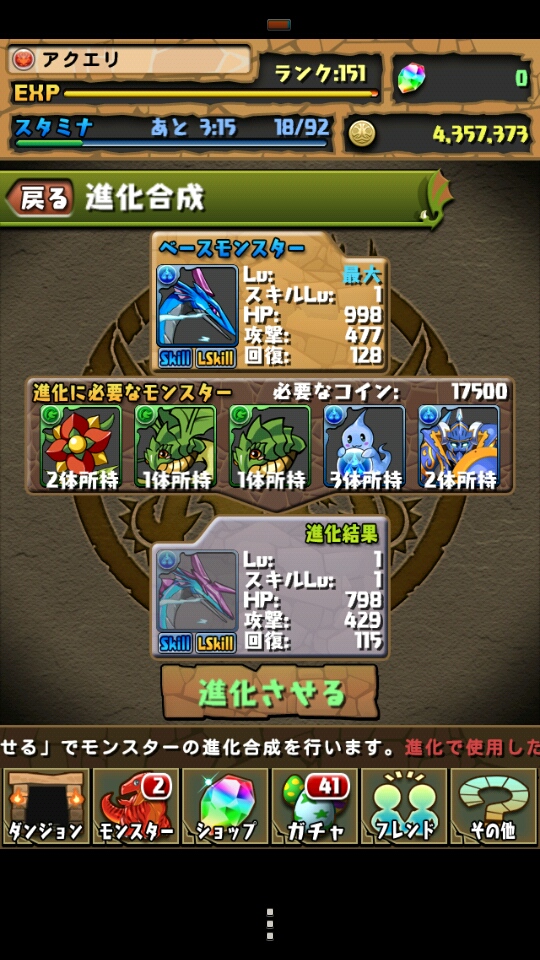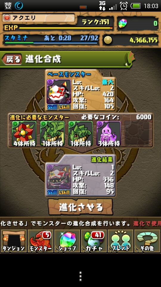 自分としては、ステージクリアよりも、進化させたときが一番達成感があるなぁ。