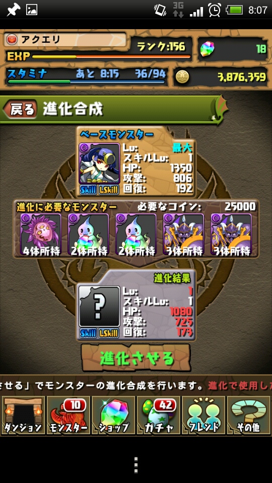 進化したら使うかというと微妙ですが、進化できるモノが少なくなってきたので。