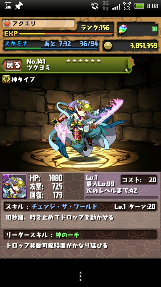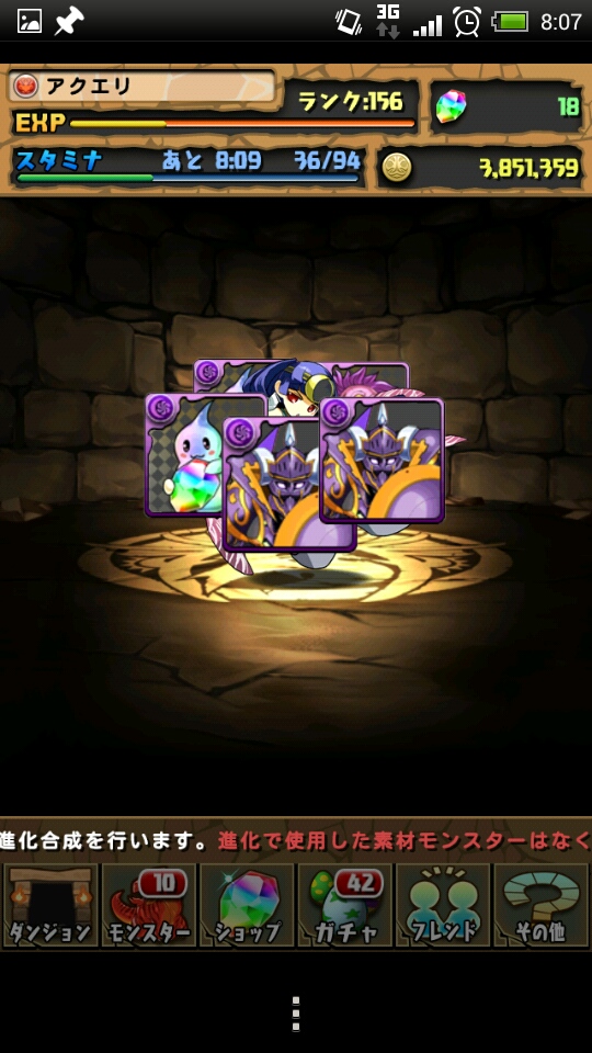 ドロップの操作が残念な感じ(今でもそうですが)だった頃、少しでも長時間動かしたくて、リーダーにしたこともあったんですが、ダメ半減のカラードラゴンたちよりどうしても使う機会が少なくて、そのうち強化すらしなくなって。