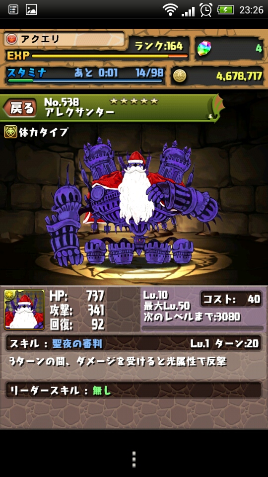 でも、アレクサンターに遭遇とかめったに無いチャンスを見逃すわけには行かないので、1コン。