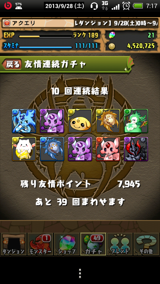 友情ポイント溜まりすぎて満タンになりそうだったのでやってみたら、たまドラが…。