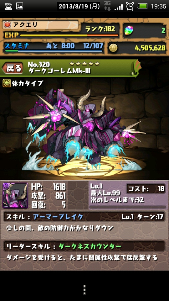 ずっとベンチを暖めていたダークゴーレムMk-IIの進化。