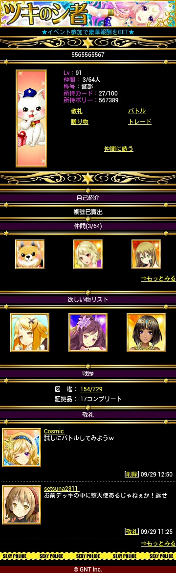 アンケート結果のページ下部にてコメントを記入する。お名前にはゲーム内の名前、選んだ回答は実際選んだ選択肢(内緒は無効)、本文には現在のレベル、希望のカードを必須入力とする。本文には感想等(お叱りの言葉でも何でも)書いていただいても構いません。